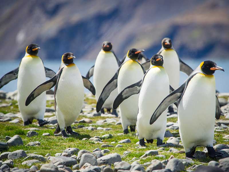 À bord de votre navire, partez à la découverte de la Géorgie du Sud, région formée par une chaîne montagneuse sous-marine prolongeant les Andes jusqu’en péninsule Antarctique. Toute la faune du Grand Sud y est représentée : manchots royaux et papous, éléphants de mer, otaries à fourrure… Vous aurez peut-être l’occasion de découvrir les glaciers majestueux de Gold Harbour et les vastes plaines de Fortuna Bay. Si vous avez la chance de débarquer à Salisbury Plain, un grand spectacle s’offrira à vous : plus de 300 000 manchots royaux, reconnaissables à la tache orange vif ornant leur tête et leur cou, y ont élu domicile.