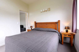 Les One Bedroom Units with kitchenette sont plus spacieux, avec un salon et une chambre séparée. Ils peuvent accueillir jusqu'à trois personnes avec un lit double queen-size ou deux lits simples dans la chambre, et un troisième lit simple dans le salon. La salle de bains est équipée d'une douche.
