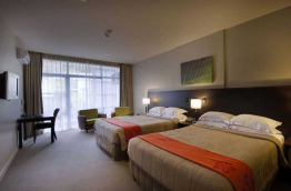 Le Sudima Lake Rotorua dispose de 250 chambres réparties sur 3 étages. Certaines chambres équipées d’un balcon offrent une belle vue sur le lac. De confort simple, elles sont toutes dotées d'une salle de bains, d’un sèche-cheveux, d'une télévision, d’un fer à repasser, d’un coffre-fort, d'un minibar, d'un nécessaire à thé et café, de l'air conditionné, d’un chauffage individuel et d’un ventilateur. Accès internet en Wi-Fi payant.