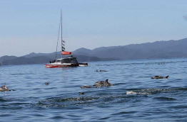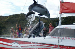 A bord d'un catamaran, partez à la rencontre des nombreux dauphins sauvages qui peuplent la Bay of Islands. Cette excursion divertissante de 6 heures au départ de Paihia offre l'occasion unique d'observer ces mammifères marins et d'admirer la beauté des paysages de cette baie spectaculaire