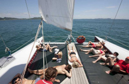 En cours de navigation, vous pourrez assister l'équipage dans les manœuvres, ou vous détendre. Votre bateau jettera l'ancre à proximité d'une île pour vous permettre de vous baigner ou pratiquer le snorkeling dans des eaux tranquilles en bordure d'une crique protégée. De retour à bord, vous profiterez d'un délicieux déjeuner barbecue. Retour au port de Paihia vers 15 h 15, après une croisière mémorable.