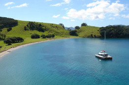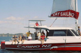 Rendez-vous au port de Paihia à 8 h 45 au plus tard pour effectuer à bord d'un catamaran une croisière de 6 heures environ dans la magnifique Bay of Islands. Début de la navigation vers 9 h 00. Vous sillonnerez la baie, dotée de nombreuses îles et d'un splendide littoral, avec sa multitude de criques et des plages par centaines. Au cours de cette croisière, vous aurez non seulement l'occasion d'admirer des paysages de toute beauté, sublimés par le camaïeu de bleu des eaux, variant du turquoise au bleu foncé, mais aussi d'observer, dans l'eau comme dans les airs, une abondante faune marine dans son habitat naturel.