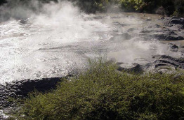 Route vers Rotorua. Parmi les curiosités autour de Rotorua, les vallées volcaniques aux eaux fumantes, aux nombreux geysers qui crachent leur jet d’eau chaude et mares bouillonnantes de Wai-O-tapu et Waimangu, sont des incontournables. Nombreuses excursions optionnelles vous sont proposées, partez en croisière sur l’un des lacs de cratère ou encore en expédition aux volcans de Mt Tarawera ou White Island.
