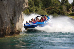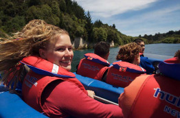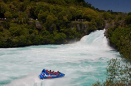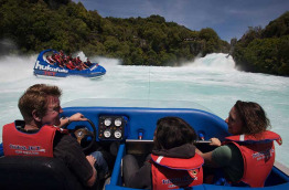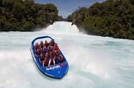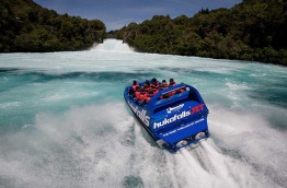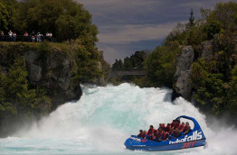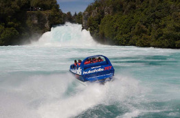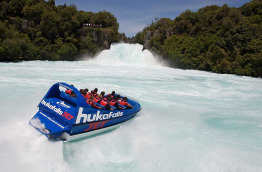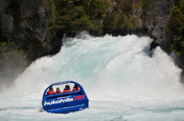 Ce trajet à haute vitesse, au cours duquel votre pilote vous fera faire des tours à 360°, ravira les amateurs de sensations fortes. En atteignant les spectaculaires et fameuses Huka Falls, vous serez impressionnés et fascinés par la puissance du débit de cette rivière aux eaux turquoise et limpides. De votre bateau, vous bénéficierez d'un point de vue unique sur ces chutes grandioses. Retour au Wairakei Tourist Park après 30 minutes intenses, transfert à votre hôtel.