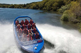 Prise en charge à votre hôtel pour votre transfert au Wairakei Tourist Park, situé à 10 minutes de route au Nord de Taupo, au départ duquel vous attend une aventure palpitante de 30 minutes : effectuer un trajet à 80 km/h en jet boat sur la rivière Waikato. Cet environnement naturel splendide est offert par la végétation native et les parois rocheuses bordant la rivière. De nombreuses sources chaudes naturelles constituent également le paysage aux abords de ce fleuve, qui se jette dans le lac Taupo. Il s'agit du plus long fleuve du pays, s'étendant sur une distance de 425 km.