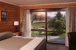 Les chambres sont séparées de l'édifice principal, ce qui vous donne plus d'intimité. Les chalets sont au bord de la rivière et ont de une à cinq chambres. Ils ont une terrasse ensoleillée avec vue sur la rivière Tongariro, le Lake Taupo ou les montagnes.