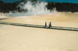 Une journée entière consacrée à la découverte de Rotorua, à explorer les sites géothermiques et découvrir la culture maorie. Parmi les curiosités autour de Rotorua, les vallées volcaniques aux eaux fumantes, aux nombreux geysers qui crachent leur jet d’eau chaude et mares bouillonnantes de Wai-O-tapu et Waimangu, sont des incontournables. Nombreuses excursions optionnelles vous sont proposées, partez en croisière sur l’un des lacs de cratère ou encore en expédition aux volcans de Mt Tarawera ou White Island.