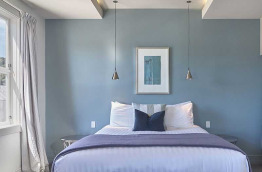 La Blue Room est équipée d'un lit double queen-size, d'une salle de bains et d'un petit balcon dominant le jardin.