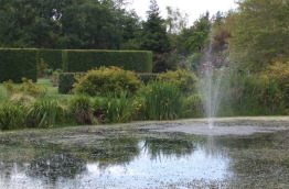 Le grand jardin du Te Anau Lodge possède un étang et un petit kiosque en bois ainsi qu'une fontaine.