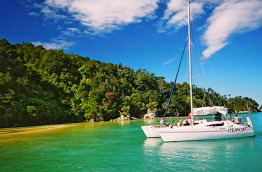En option : au départ de Marahau ou Kaiteriteri, Excursion randonnée et voilier combinant randonnée libre de 4 heures combinée à une croisière voilier de 3 heures ;