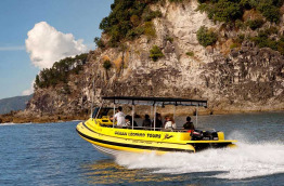 Rendez-vous à Whitianga Wharf, sur la côte Est de la péninsule de Coromandel, pour effectuer une croisière grandiose de 2 heures dans un cadre naturel d'une beauté exceptionnelle. A bord de votre bateau, vous explorerez en petit groupe les richesses de la baie de Mercury, bordée par l'Océan Pacifique. Vous longerez la côte volcanique, un littoral à la beauté sauvage avec ses falaises à pic que l'océan façonne depuis des millions d'années. Elle s'étend jusqu'à la remarquable plage de Hot Water où il suffit de creuser un trou dans le sable pour avoir sa propre piscine thermale ! Au cours de cette croisière, vous pourrez également admirer Lonely Bay, la falaise Shakespeare ainsi que les superbes plages de Cooks et de Hahei. Vous serez impressionnés par les « trous souffleurs » géants (sorte de geysers maritimes), les grottes maritimes et les imposants pics rocheux que vous aurez l'occasion d'observer de près.