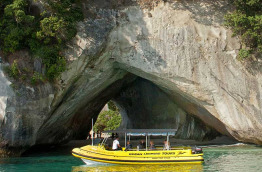 Si les conditions météorologiques le permettent, votre bateau pénétrera dans la grotte d’Orua, la deuxième plus grande grotte marine de Nouvelle-Zélande. Vous découvrirez la réserve marine de Te Whanganui-A-Hei, avec ses plages de sable blanc, ses eaux cristallines, ses petites îles, ses jardins de rocaille. C’est ici que se trouve le site spectaculaire de Cathedral Cove avec son arche naturelle creusée par l'océan, et aussi une abondante faune et flore marine et de nombreux oiseaux. Tout au long de votre croisière, votre guide commentera les fabuleux trésors de la vaste et fantastique baie de Mercury. Vous aurez bien sûr du temps pour la contemplation et pour ressentir l'atmosphère de cet environnement grandiose. Vous retournerez ensuite à Whitianga Wharf où votre croisière prend fin. Débarquement, transfert libre à votre hôtel.