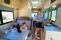 Camping-car familial avec une profusion d’espace de rangement. L’Euro Camper est entièrement équipé pour permettre à quatre personnes de passer un séjour des plus mémorables en Nouvelle-Zélande. Ce véhicule a été dessiné pour vous assurer le plus de confort et vous rendre la vie plus pratique.