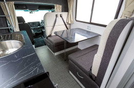 Le Polaris 6 permet à 3 couples ou une famille de 6 personnes de voyager dans des conditions de confort optimal. Il offre 3 grands lits doubles, des volumes généreux et un équipement de qualité. Sa conduite est agréable malgré sa taille imposante. L'espace cuisine avec son grand frigidaire est bien agencé, de quoi vous faire oublier que vous vous trouvez dans un camping-car.