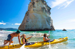 Journée libre pour explorer les environs. Direction Hahei Beach, avec plusieurs options possibles : balade sur le sable, parcours côtier à vélo ou sortie en kayak jusqu’à Cathedral Cove. En fin de journée, direction Hot Water Beach, où des sources chaudes sont enfouies sous le sable. Il suffira de creuser un trou pour y faire sa propre piscine thermale (selon la marée).