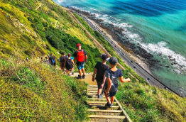 Départ tôt le matin pour rejoindre l’île du Nord. Arrêt dans les Marlborough Sounds, une région viticole réputée pour son sauvignon blanc. L’occasion de déguster de délicieux vins, à boire avec modération ! L’aventure se poursuit, avec la traversée des Marlborough Sounds à bord d’un ferry à destination de Wellington, pour 3 heures de voyage à travers le Détroit de Cook. Rejoignez votre campement de Paekakariki le long de la Kapiti Coast.