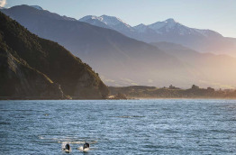 Le voyage se poursuit à travers la région des Marlborough Sounds le long du littoral. Pause déjeuner sur la côte, l’occasion d’observer les nombreuses otaries à fourrure qui aiment se prélasser sur les rochers. Poursuite jusqu’à Kaikoura, véritable paradis des amoureux de la nature, où les montagnes plongent dans l’Océan Pacifique. Temps libre pour profiter des nombreuses activités optionnelles (en supplément) tournées vers l’océan : survol ou croisière pour observer les majestueuses baleines et dauphins de Kaikoura en saison, kayak, pêche, randonnée à pied ou VTT sur la péninsule. Ce soir, profitez d’un délicieux dîner de produits de la mer. Vous dormirez en camping sur la plage.
