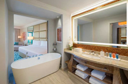 Enfin, les Grand Atlantis Suite de 429 m2 comptent deux chambres, un bain à jets privé, et cinq balcons avec vue sur la mer et the Palm.