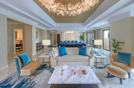 Les Presidential Suite mesurent 220 m2. Elles sont, entre autres, dotées d’une vaste chambre, d’un salon avec billard, et d’un bain à jets privé.