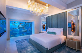 L’exceptionnelle Underwater Suite de 165 m2 vous plongera dans un univers hors du commun. La suite est placée au milieu d’un immense aquarium : vous pourrez donc admirer poissons et requins depuis votre chambre, votre salon, ou même votre baignoire.