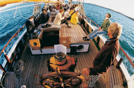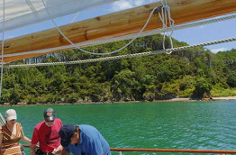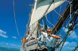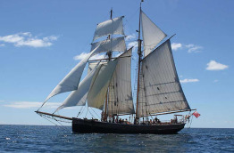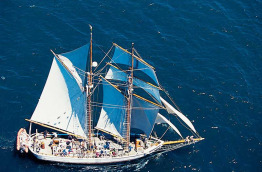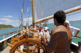 Début de la navigation à 10 h 00. Votre bateau dispose de nombreux espaces permettant de se relaxer et de profiter du soleil en admirant les paysages défiler. Si vous le souhaitez, vous pourrez rejoindre l'équipage et prendre part aux manœuvres en aidant à hisser les voiles, et même en tenant la barre. Détendez-vous en sillonnant cette magnifique baie, admirez les immenses voiles de votre majestueuse embarcation se gonfler d'air. Tout au long de la croisière, l'équipage chaleureux sera ravi de partager avec vous les récits de voyages passés. Votre bateau jettera l'ancre à proximité d'une île, l'occasion de vous baigner dans des eaux tranquilles en bordure d'une crique protégée. De retour à bord, un déjeuner barbecue vous sera servi. Retour au port de Russell vers 15 h 30. Vous aurez ensuite la possibilité de profiter de la ville de Russell et de son agréable front de mer avant de prendre le ferry qui vous ramènera à Paihia (départ toutes les 20 minutes).