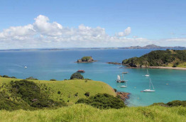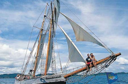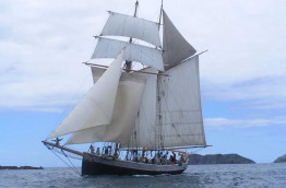 Rendez-vous au port de Paihia à 9 h 30 pour effectuer un court trajet en ferry qui vous mènera à la petite ville de Russell, située en face de la ville Paihia, au bout d'une petite péninsule qui s'étend dans la baie. Russell est la première ville portuaire du pays à avoir été érigée par les Européens ; la Bay of Islands est d'ailleurs considérée comme le berceau de la colonisation européenne. A votre arrivée au port de Russell, vous embarquerez à bord d'un magnifique voilier, le « R. Tucker Thompson », pour effectuer une croisière à la découverte de la Bay of Islands.