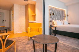 D’une superficie de 38 m2, les Junior Suite King offrent la possibilité de fermer la cloison entre la chambre et le salon.