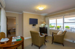 Une Main Suite offre une vue panoramique sur le lac. Elle possède un grand lit king-size, un grand espace salon et un coin repas, une salle de bains, un dressing, ainsi qu'un grand balcon.