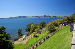 Niché sur la pointe de Kawaha, en surplomb du lac de Rotorua, ce lodge est un véritable havre de tranquillité. Les vues spectaculaires sur le lac et sur la petite île de Mokoia ne manqueront pas de vous surprendre. Pour un séjour de standing dans un endroit sublime, laissez-vous choyer au On the Point - Rotorua.