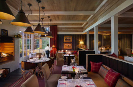 Les repas sont servis dans le lodge, et c’est notamment autour des cheminées et dans les salons que se retrouvent les clients avant le dîner pour prendre un verre accompagné de canapés, afin de faire connaissance avec les autres hôtes du lodge.