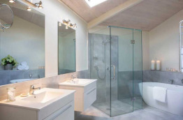 La Villa Suite peut être réservée comme une villa de deux chambres, soit 103 m2, ou en version Suite d’une chambre sur « seulement » 70 m2. Cette immense villa sur deux étages est idéale pour une famille ou des amis voyageant ensemble, avec au rez-de-chaussée une grande chambre, salle de bains, un salon et salle à manger avec coin cuisine, et une belle terrasse avec vue sur la baie. A l’étage, vous trouverez une seconde chambre tout aussi spacieuse avec salle de bains.