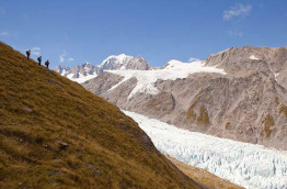 Cette zone est parsemée de plantes alpines, et des chamois y sont fréquemment aperçus. Du refuge, le chemin monte à travers les prairies couvertes de végétation persistante, et mène à un magnifique point de vue, au pied d'un ravin. Vous pourrez contempler le majestueux Mt Tasman, deuxième plus haute montagne de Nouvelle-Zélande après le Mt Cook, son voisin. Votre guide organisera ensuite l'ascension sécurisée du ravin, permettant d'accéder à une large arête, sous le sommet du Chancellor Dome.