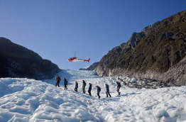 Rendez-vous en début de matinée au point de rencontre dans le village de Fox Glacier. Vous vous dirigez vers la vallée glaciaire de Fox à bord d'un hélicoptère. Vous survolerez la splendide forêt pluviale et les spectaculaires pics de glace avant de vous poser à Chancellor Shelf, à 1 270 m d'altitude, juste au-dessus du « Chancellor Hut ». Niché environ 200 m au-dessus du glacier de Fox, ce refuge historique bénéficie d'une situation exceptionnelle, permettant d'admirer quelques-uns des plus hauts sommets du pays.