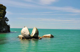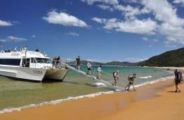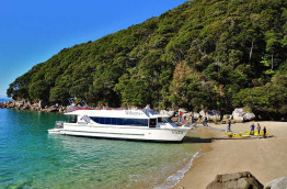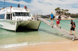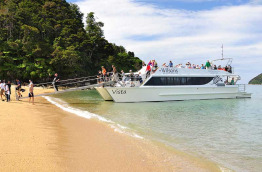 Rendez-vous sur place en début de matinée à Kaiteriteri, petite ville côtière située au Sud du Parc national d'Abel Tasman. Embarquement à bord d'un catamaran Vista pour une croisière confortable de 3 h 30 environ le long de la côte Est du parc, en direction de Totaranui. Début de la navigation sur les eaux azur de la baie de Tasman vers 9 h 20. Relaxez-vous en intérieur ou extérieur sur l'un des deux ponts du bateau en admirant le paysage de toute beauté défiler sous vos yeux. Vous longerez d'innombrables criques pittoresques baignées par des eaux limpides. Vous découvrirez les baies et plages intactes nommées par Dumont d'Urville en 1827 en pénétrant dans l'Astrolabe Roadstead, lieu d'ancrage de l'Astrolabe, corvette à bord de laquelle cet explorateur Français arriva d'Europe.