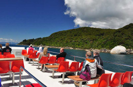 Au départ de Kaiteriteri, longez la côte Est du Parc national d'Abel Tasman à bord d'un catamaran confortable. Cette croisière de 3 h 30 environ vous dévoilera une multitude de criques et plages pittoresques, bordées par des eaux superbes. En basse saison, le bateau jette l'ancre 2 h 30 à 3 h, offrant l'opportunité de vous promener dans la forêt native ou de vous relaxer sur une plage !