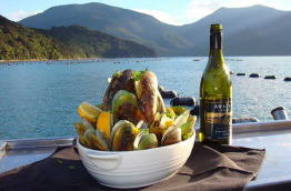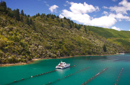 Déjeuner léger au bord de l'eau avant avant d'embarquer à bord d'un catamaran confortable de 20 m pour effectuer une croisière pittoresque à travers les majestueux Marlborough Sounds. Votre bateau dispose d'espaces intérieurs et extérieurs d'où vous pourrez admirer confortablement les nombreuses baies et criques isolées défiler sous vos yeux. Sillonnez les eaux calmes du Queen Charlotte Sound tout en dégustant des fruits de mer accompagnés d'un verre de Sauvignon blanc, provenant de la région vinicole réputée de Marlborough. Retour à la marina au bout de 3 h environ et transfert à votre hôtel à Blenheim en fin d'après-midi.