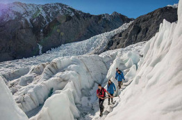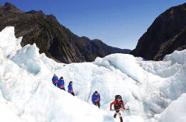 Vous vous poserez dans la zone de pics de ce splendide glacier. Vous allez explorer à pied cet univers de glace remarquable, avec des pics de glace aussi hauts que des bâtiments de plusieurs étages. Encadrés par un guide expérimenté, vous naviguerez dans un fabuleux labyrinthe de glace en écoutant ses explications sur le changement spectaculaire de cet environnement au cours des dernières années. Après une marche de 2 heures 15 environ, vous effectuerez à nouveau un rapide trajet en hélicoptère pour regagner le village de Franz Josef. Atterrissage au bout de 3 heures 30 environ. Transfert libre votre hôtel.
