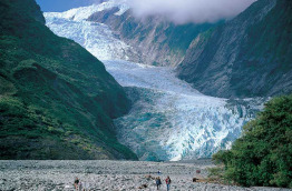 Transfert libre au point de rendez-vous dans le village de Franz Josef. Retrouvez votre guide puis prenez place à bord d'un hélicoptère pour effectuer un rapide trajet (4 min par trajet) en direction du célèbre glacier de Franz Josef. Long de 12 km, il est spectaculaire et constitue un véritable trésor du patrimoine naturel néo-zélandais. Tout comme le glacier de Fox, il descend des Alpes du Sud et prend fin dans la forêt pluviale à moins de 300 m au-dessus du niveau de la mer. Nulle part ailleurs à cette latitude des glaciers s'approchent si près de la mer ; la mer Tasman n'est qu'à une vingtaine de kilomètres !