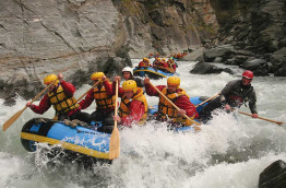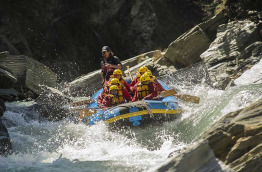 À votre arrivée à la rivière Shotover, vous monterez à bord d'un radeau pneumatique pour effectuer une descente palpitante à travers le canyon. Une expérience intense et divertissante, au cours de laquelle vous franchirez de nombreux rapides dans les gorges étroites de cette rivière, qui ravira les plus expérimentés comme les débutants (classe 3-5).