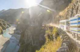 Départ de Queenstown et transfert sur le lieu de départ. De là, vous effectuerez un trajet mémorable de 40 minutes environ vers l'historique canyon de Skippers. Ce dernier est traversé par la rivière Shotover, très convoitée dans le passé pour son or. Pour y accéder, vous emprunterez la spectaculaire Skippers Road, construite à flanc de montagne, le long de la vallée Shotover. Cette route tortueuse et autrefois dangereuse, date de l'époque de la ruée vers l'or, dans les années 1860.