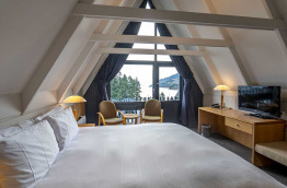 Certaines chambres possèdent un balcon avec une vue superbe sur les montagnes ou sur le lac (en supplément).