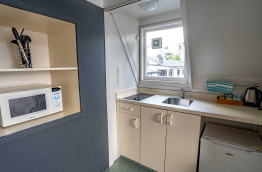 Les 5 Family Rooms sont plus spacieuses (50 m2). Elles peuvent accueillir jusqu'à 4 personnes avec un lit double et deux lits simples. Elles possèdent une kitchenette et un petit salon.