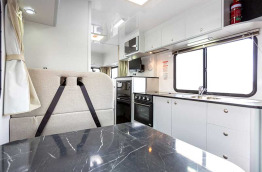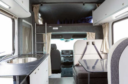 Le Cheapa 6 Berth est un camping-car idéal pour un groupe d'amis ou une famille qui recherche des vacances économiques. L'intérieur bien pensé offre tout le confort que l'on attend d'un camping-car de 6 places, 3 lits doubles, une cuisine équipée (avec cuisinière à gaz, réfrigérateur, micro-ondes et évier) ainsi que d'une douche et toilettes. Les véhicules Cheapa ont plus de 4 ans.