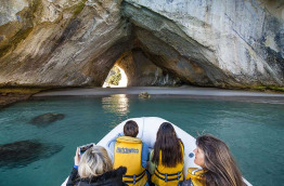 Au cours de cette croisière, vous pourrez admirer les superbes plages et baies le long de la côte. Vous serez impressionnés par les imposants pics rocheux que vous aurez l'occasion d'observer de près. Sur votre parcours, vous découvrirez la grotte marine d’Orua, la deuxième plus grande grotte marine de Nouvelle-Zélande, ainsi que celle de Whale, en bordure de l'île de Mahurangi. Vous pénétrerez dans la réserve marine de Te Whanganui-A-Hei, avec ses plages de sable blanc, et ses petites îles. Vous apprécierez le site spectaculaire de Cathedral Cove avec son arche naturelle creusée par l'océan, son abondante faune et flore marine, et ses nombreux oiseaux. Vous découvrirez également l'arche de Poikeke, située au cœur de la réserve. Tout au long de la croisière, votre guide commentera les fabuleux trésors de la jolie baie de Mercury. Vous retournerez ensuite à la plage de Hahei où votre croisière prend fin. Débarquement, transfert libre à votre hôtel.