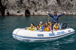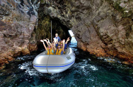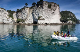 Rendez-vous à la plage de Hahei, sur la côte Est de la péninsule de Coromandel, pour effectuer une croisière grandiose d'une heure dans un cadre naturel d'une beauté exceptionnelle. A bord de votre bateau pneumatique, vous explorerez en petit groupe sur un parcours de 14 kilomètres les richesses de la baie de Mercury, bordée par l'Océan Pacifique. Vous longerez la côte volcanique, un littoral à la beauté sauvage avec ses falaises à pic que l'océan façonne depuis des millions d'années. Elle s'étend jusqu'à la remarquable plage de Hot Water où il suffit de creuser un trou dans le sable pour avoir sa propre piscine thermale !